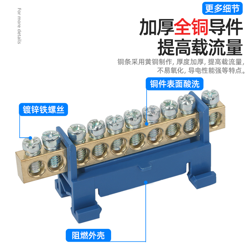 Zero-wire wiring terminal rail-type large-current distribution box connected with copper bar zero-wire-ground zero-ground strip 009