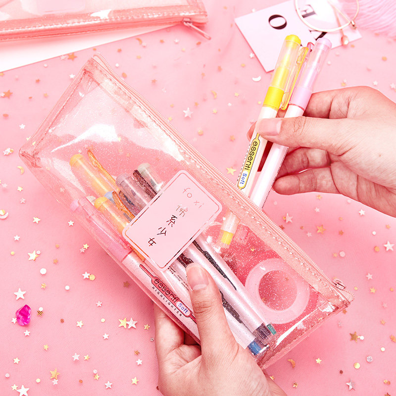 Transparent pen bag Korean junior high school students simple girls college students Xiaoxinxiang girls heart cute stationery high school students