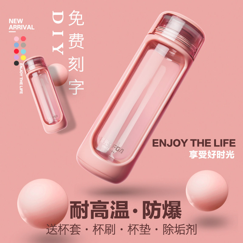 Glass glass in red plastic glass cup male and female creative cup with filter bubble tea cup