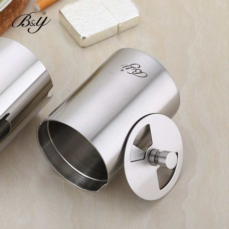 Stainless steel rotating cover ashtray car portable ashtray fashion windproof personality creative cover mini ashtray
