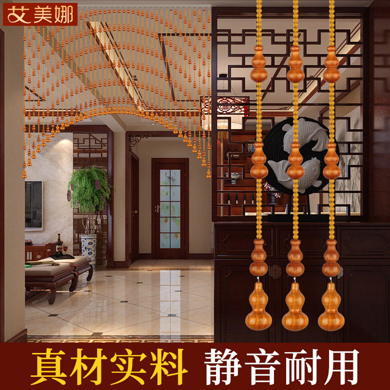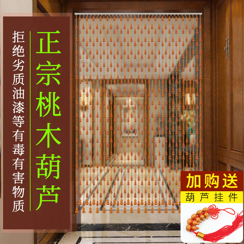 Peach Wood Hyacinth Door Curtain Home Bead Curtain Crystal Partition Living Room Genguan Make-up Room Curtain Free of perforated bead curtain