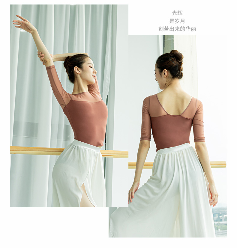 Ballet practice suit autumn adult dance costume women's mesh short sleeve top shape body dress Chinese dance gymnastics suit DZ20