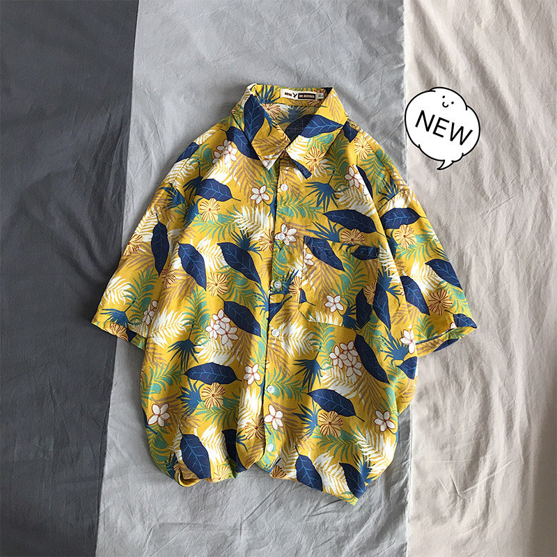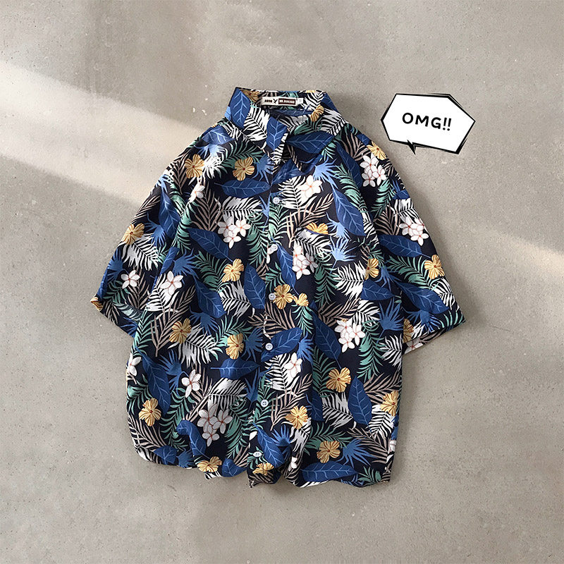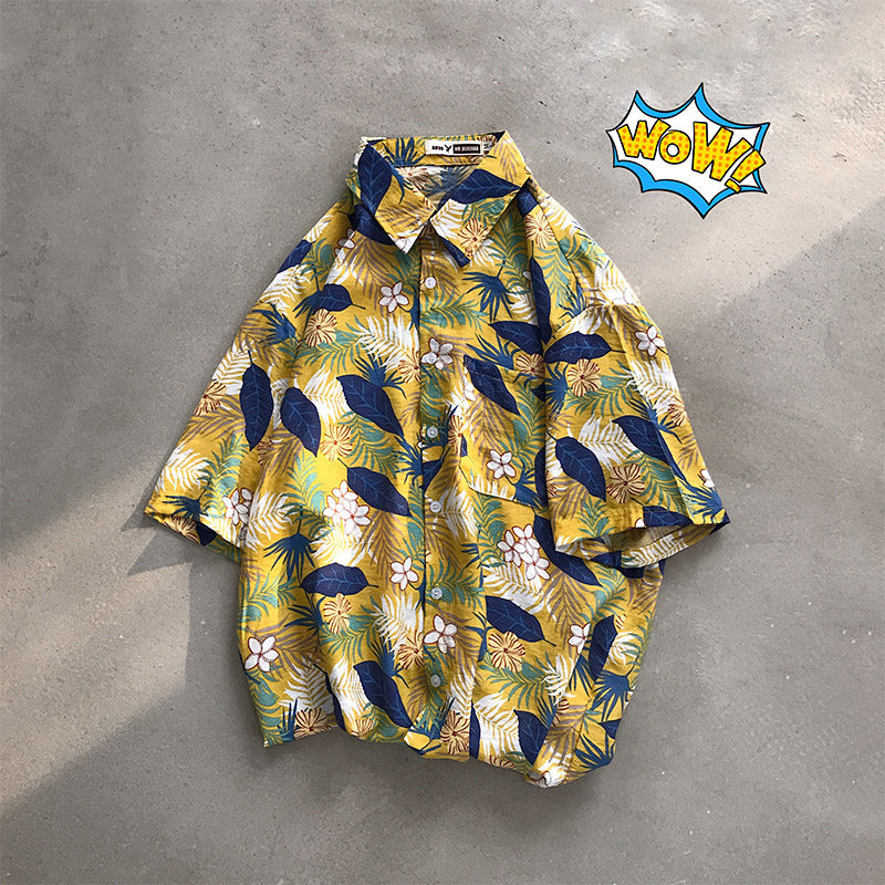 Tidal Signs Port Wind Retro Flowers Shirts Men's Size Chic Holiday Tide Thin Hawaiian Beach short sleeve shirt
