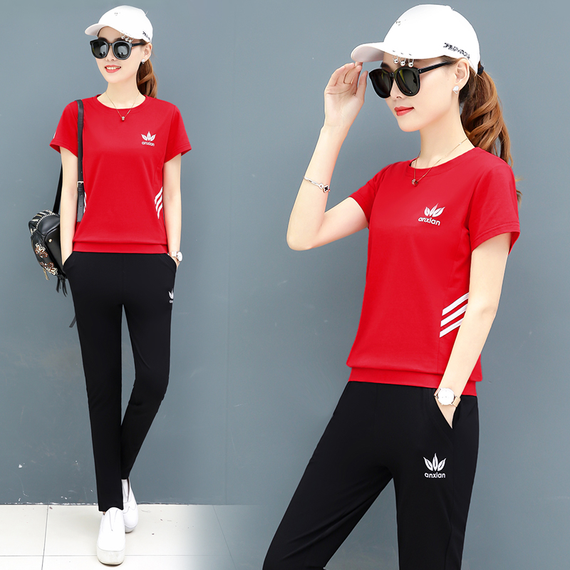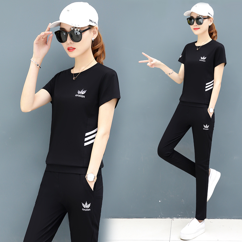 Short-sleeved trousers casual sportswear suit female summer 2020 new Korean version loose fashion cotton two-piece tide