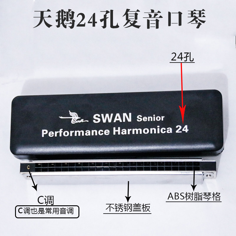 Swan harmonica 24-hole advanced adult professional beginner self-study student c-tone polyphonic playing grade harmonica for children