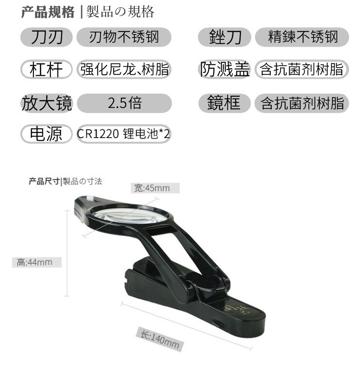 Japan imports Beiyin Guansun six-night lamp presbyopic high-definition old man 2 5 times magnifying glass nail clippers nail scissors
