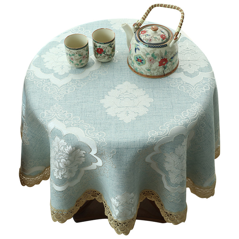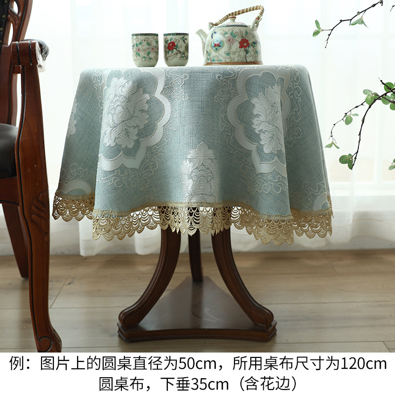 European small round table tablecloth Fabric tablecloth square dining room Hotel hotel coffee table Living room Blue household round