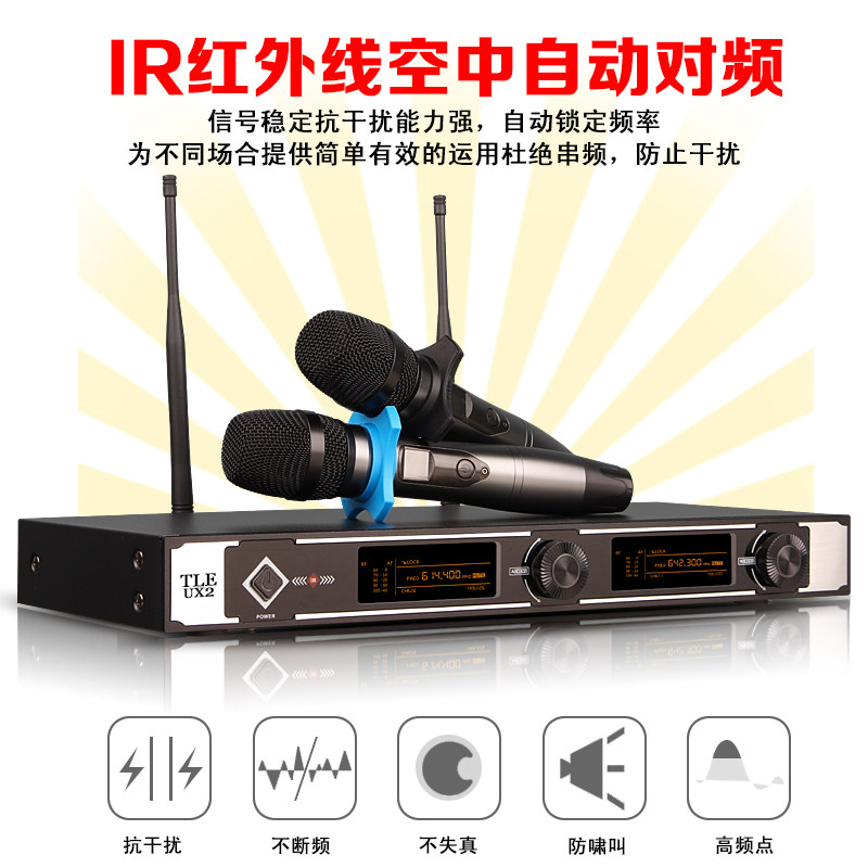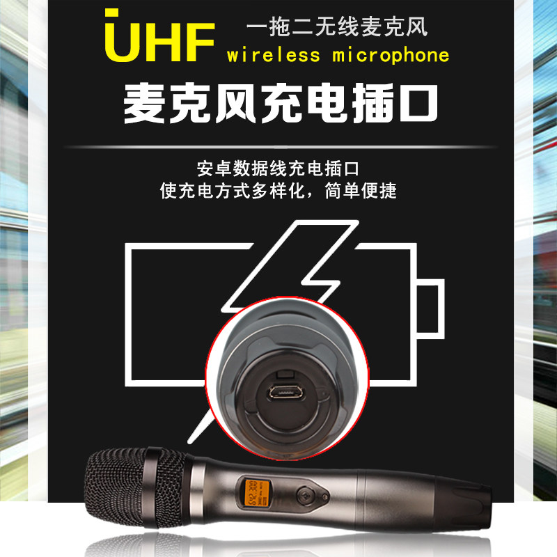 Rechargeable wireless microphone One drag two-time home K cabaret performance speech singing KTV microphone anti-howl