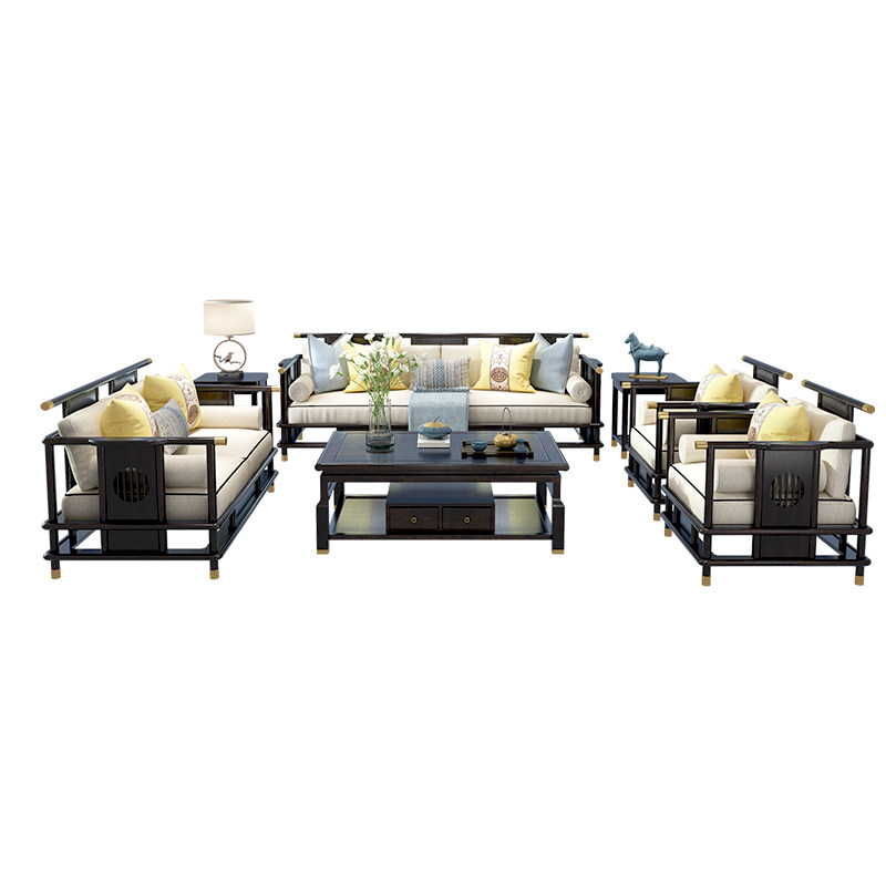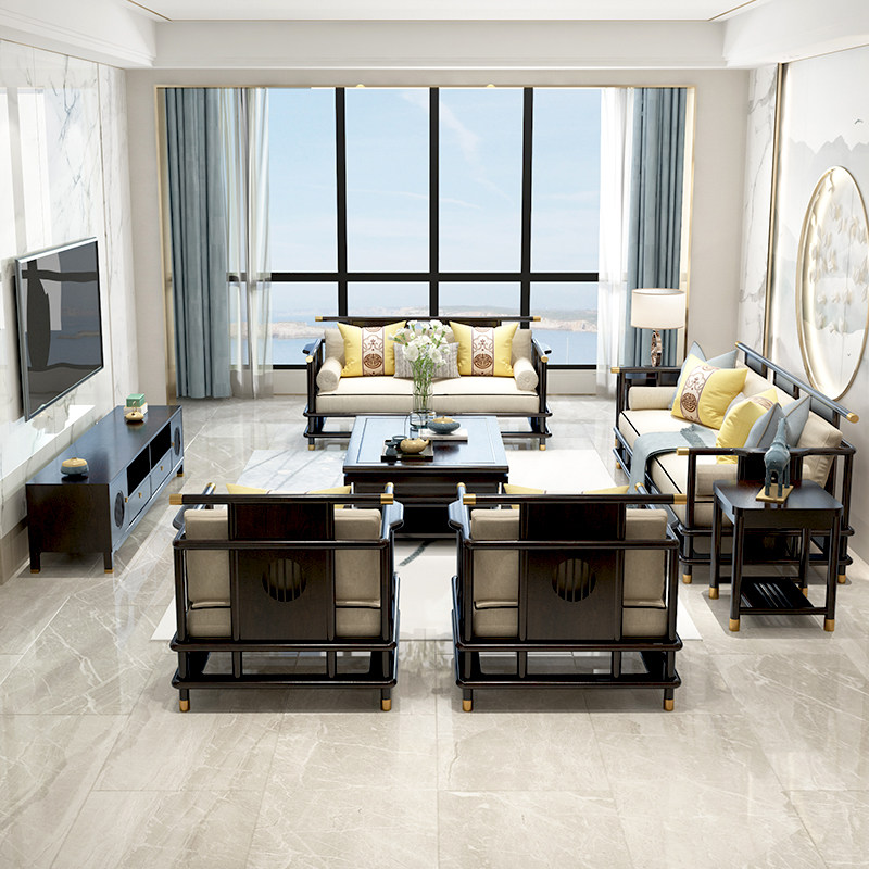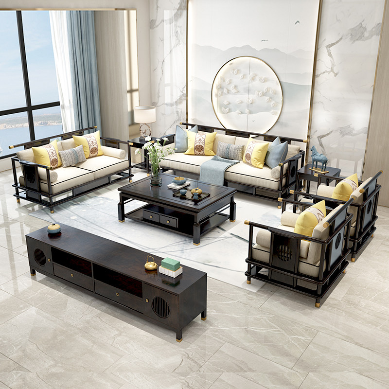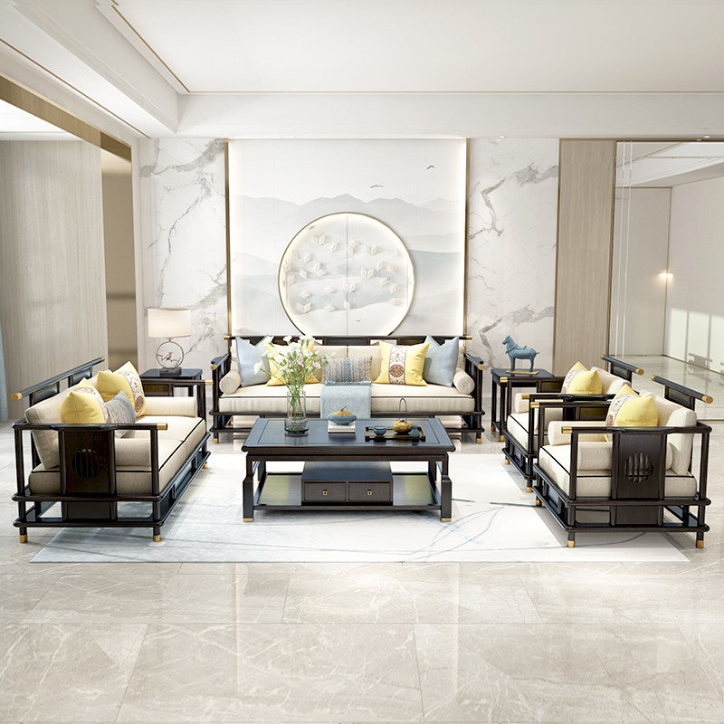 New Chinese Sofa Minimalist Modern Living Room Solid Wood Sofa Combined Villa Hotel Decent Board House Zen Furniture Custom-Taobao