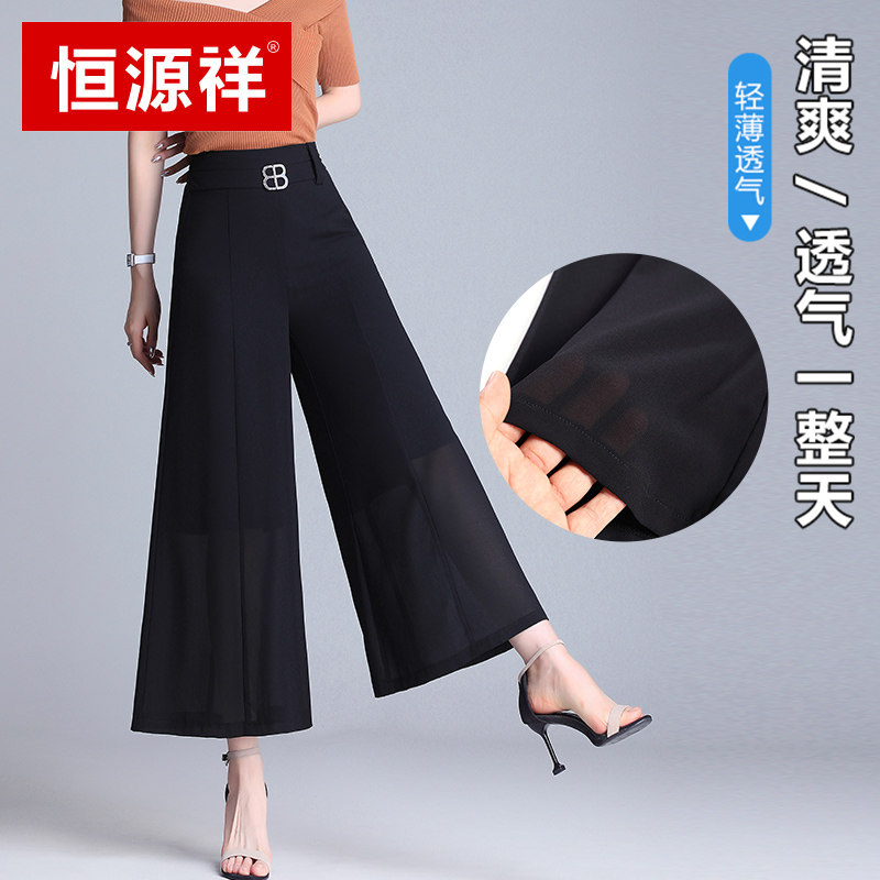 Hengyuan Xiangxue Spinning 90% wide-legged pants with high waist pituality 2022 Summer slim Thin Ocean Pie large size Size Casual Pants