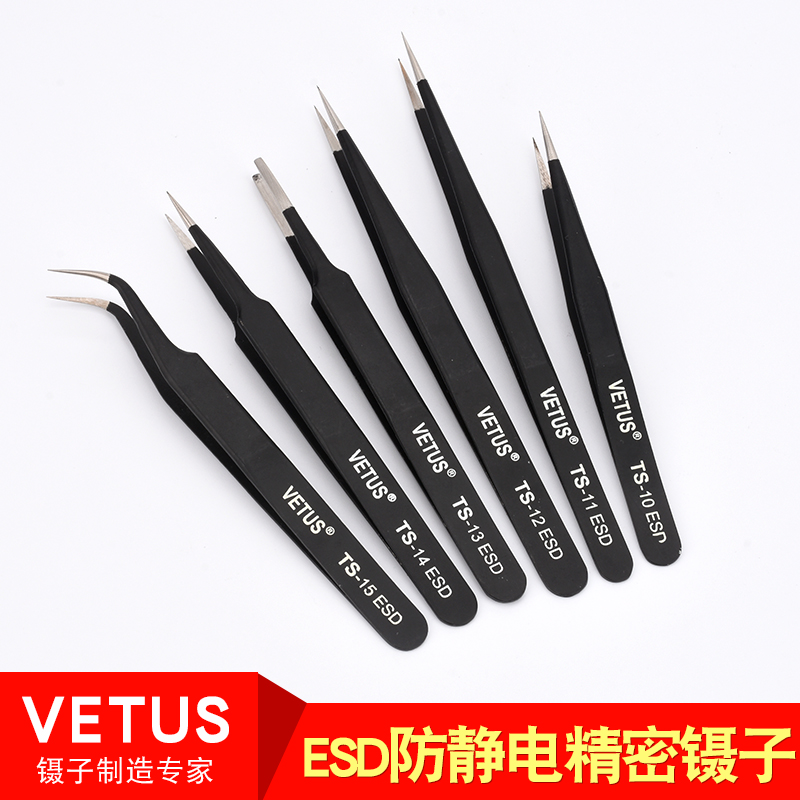VETUS Stainless Steel Elbow Fine Custard Tweezers Nest Picking Hair Tool Electronic Repair Suit Antistatic Tweezers