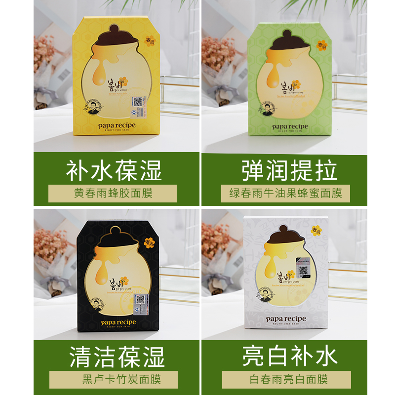 White Spring Rain (Bright White Moisturizing) Yellow Spring Rain (Moisturizing And Moisturizing) Black Spring Rain (Clean Soothing) Green Spring Rain (Spring And Pull) Powder Spring Rain (Conditioning Skin) Purple Spring Rain (Collecting Pores Fine And Moisturizing) Yellow Spring Rain