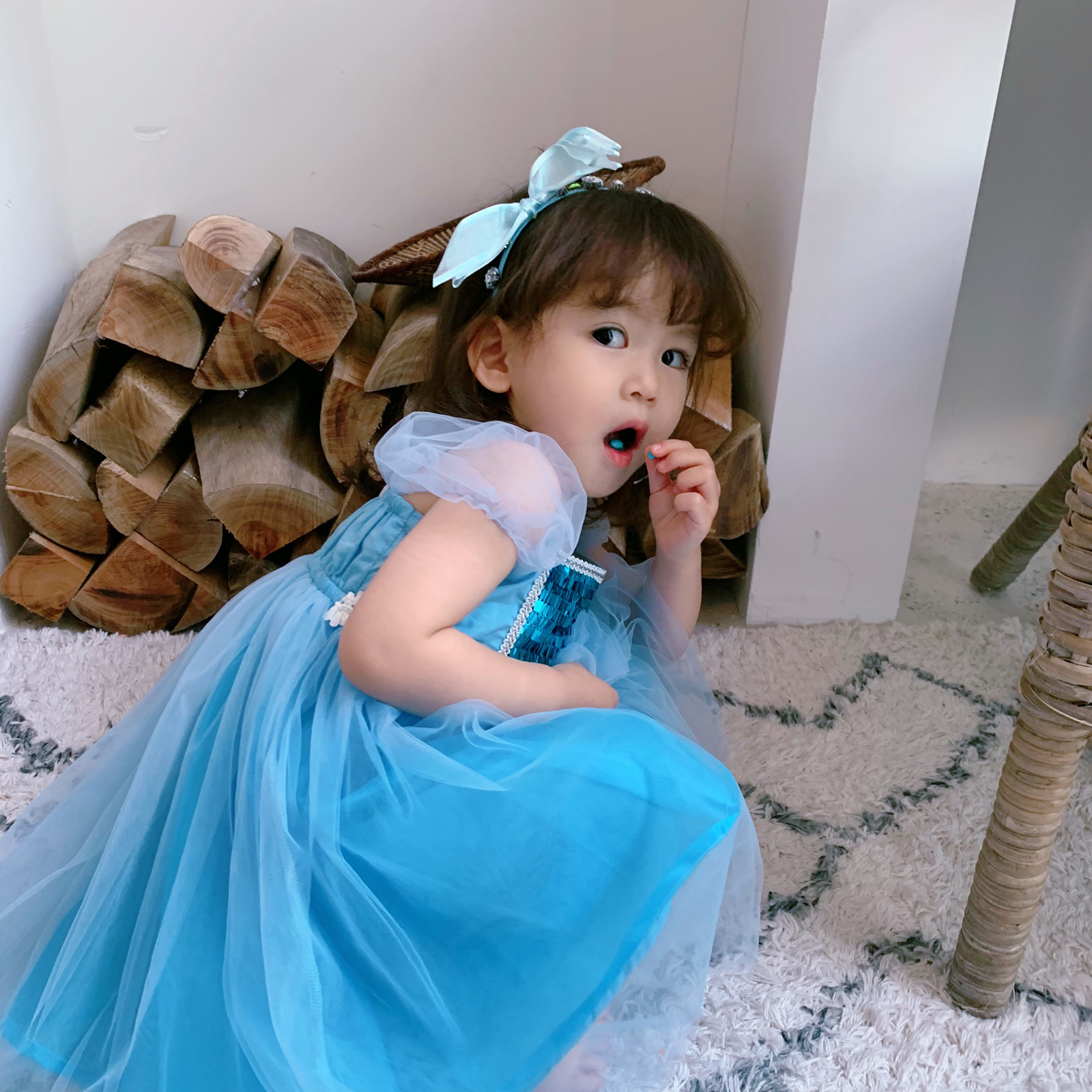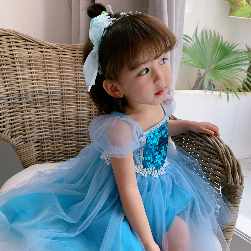 Girls Dress 2021 New thin summer dress Children Pompeo Yarn Dress Baby Super Ocean Dress