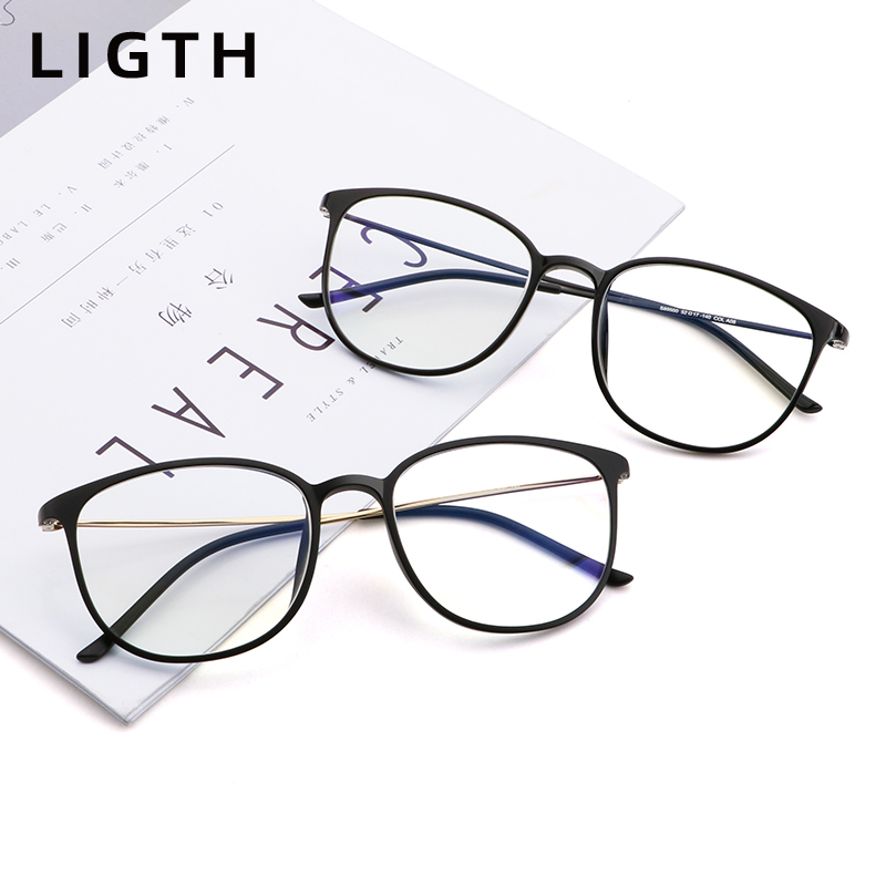 Richio retro plastic-steel titanium round frame female anti-blue light discoloration flat light glasses mobile phone radiation-proof male myopia