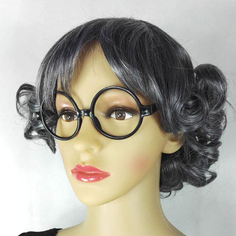 The old grandma performed a performance wig sets stage props old lady middle aged flowers white wig women short curly hair headgear