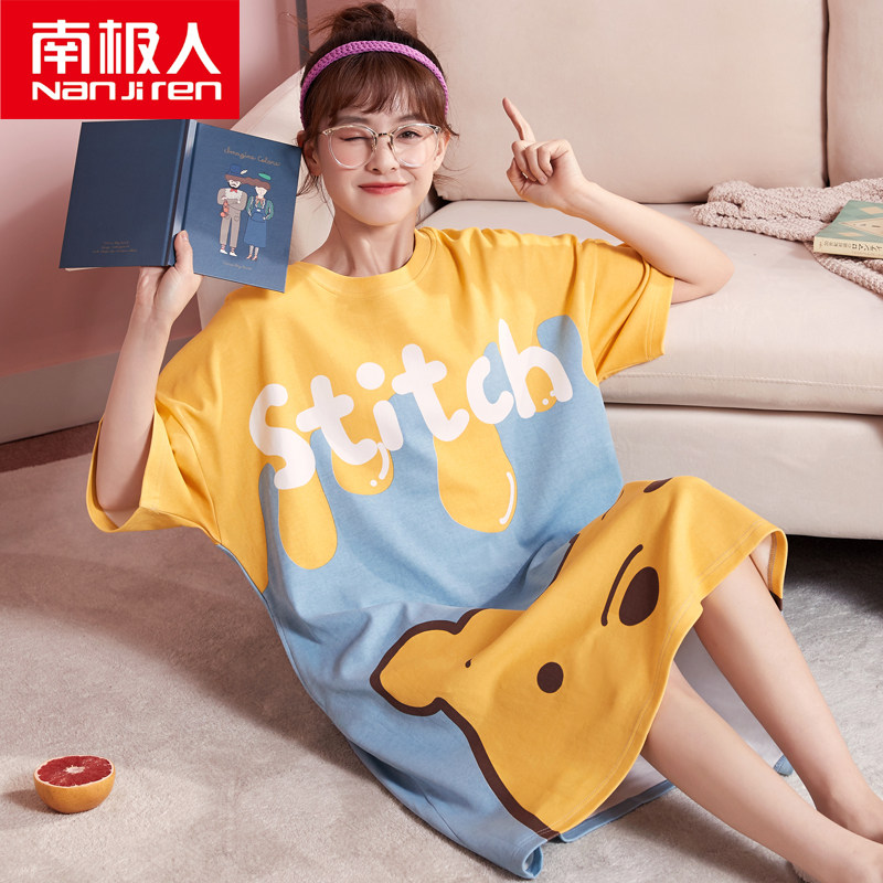 Antarctic night dress women's summer pure cotton short-sleeved pajamas Girl cute student night dress Children's summer thin dress
