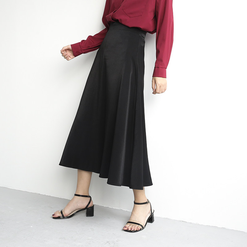 Spring and summer black skirt women's new summer high-waisted a-word Korean version ins super hot mid-length version of the drapey skirt