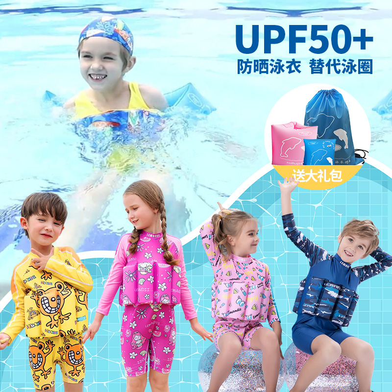 Lemandi children's swimsuit girls boys long-sleeved one-piece life jackets baby babies and toddlers bathing in hot springs