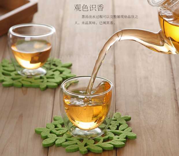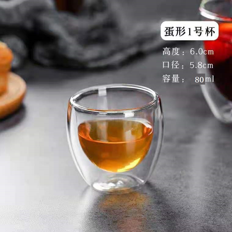 Japanese-style double-layer transparent cup 2 tea cups thick heat-resistant glass tea set men and women small capacity small water cup