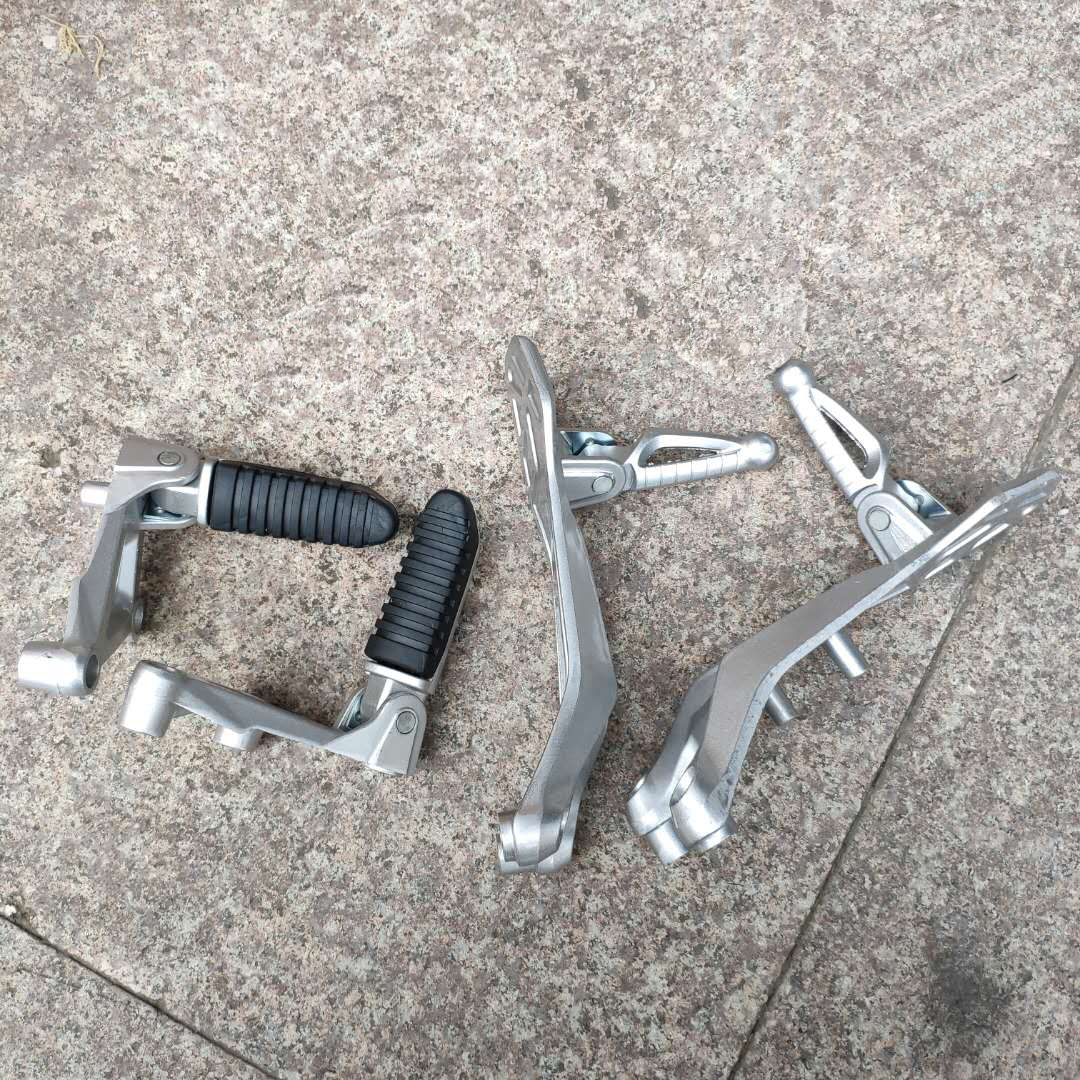 The front and rear pedals of the electric vehicle are a pair of front left pedal, a front right pedal, a rear left pedal, a rear right pedal, a shift lever, a foot brake lever, a front left and right pedals, a pair of rear left and right pedals