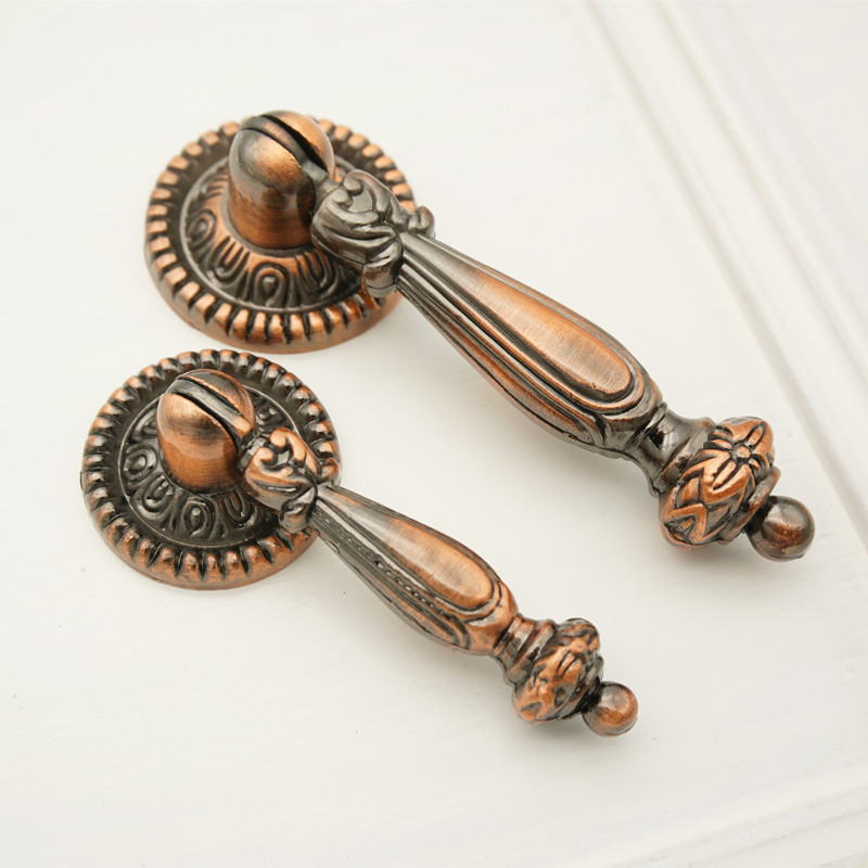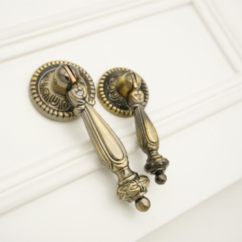 Imitation antique bronze color rings handle pendant retro single-hole wardrobe pull ring bed head cabinet medicine cabinet turquoise red ancient handle furniture