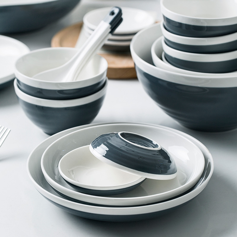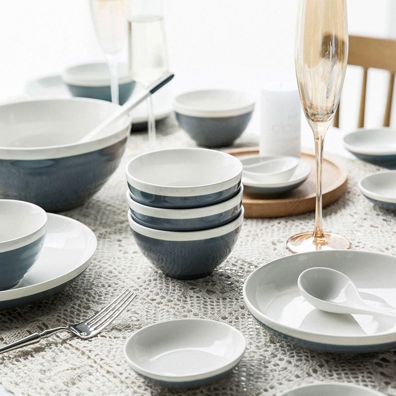 4-inch taste sauces-light blue (North Sea love) 7-inch dinner plate-blue grey (North Sea love) small soup spoon-light blue (North Sea love) 5-inch medium bowl-brown curry (North Sea romance) 7 Ying