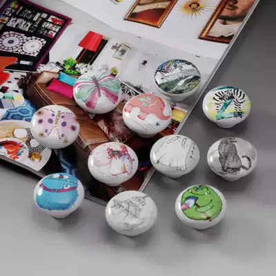 Cartoon pattern pattern pop art ceramic round handle butterfly flower hand painted sketch does not rust overall cabinet door