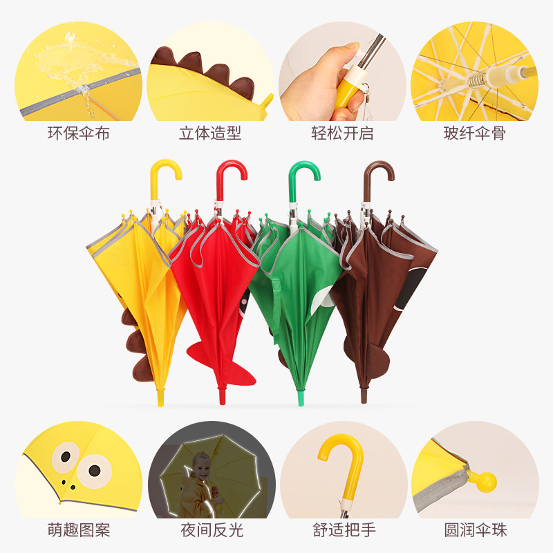 Small Bear Children Umbrella semi-automatic straight shank sunny Umbrella baby kids Cubism Cartoon Dinosaur Stop Umbrellas Beach Umbrellas-Taobao