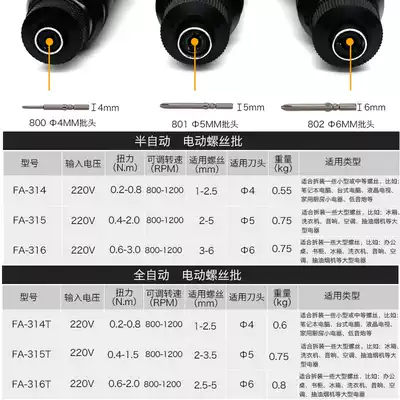 FA-314 semi-automatic electric screwdriver (factory standard) FA-314 semi-automatic electric screwdriver (package) FA-315 semi-automatic electric screwdriver (factory standard) FA-31