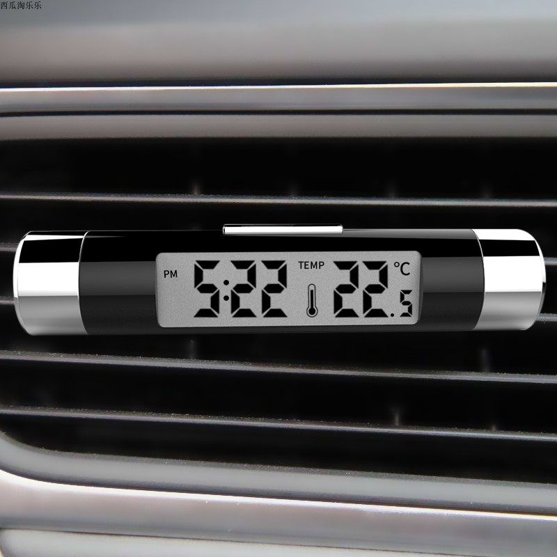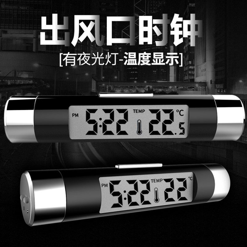 Car On-board Clock Air Outlet Liquid Crystal Thermometer Night Light Electronic Time Watch Display In-car Supplies