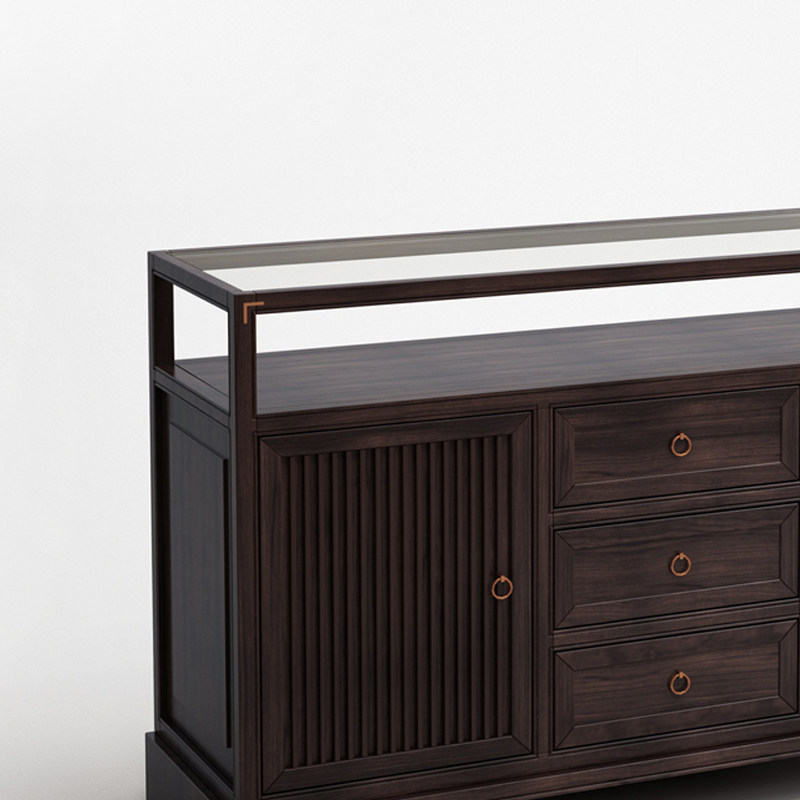 New Chinese Walnuts Wood Dining Cabinet Solid Wood Dwarf Cabinet Living-room Containing Cabinet Modern Minima Tea Water Cabinet Hall Decoration Cabinet