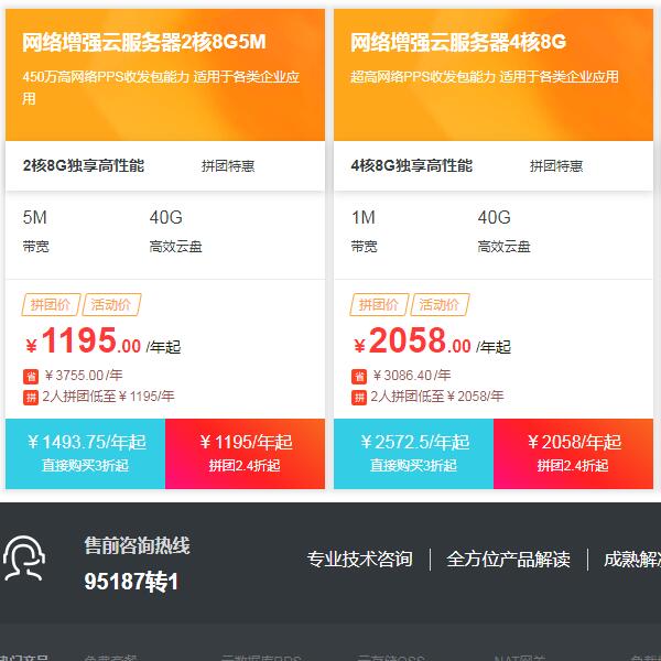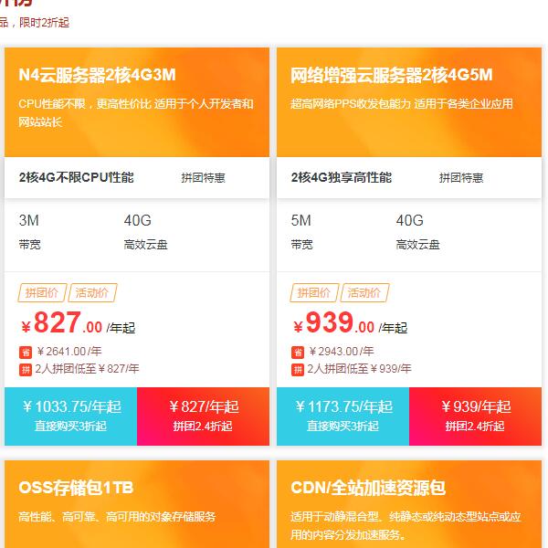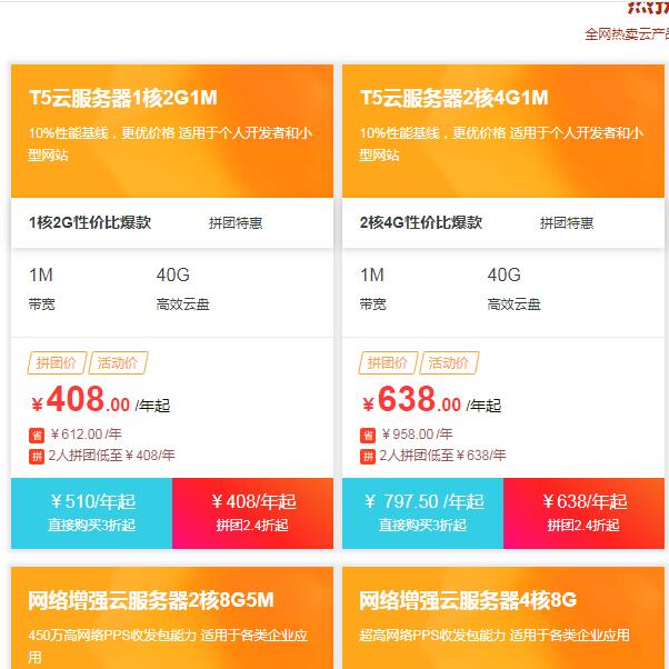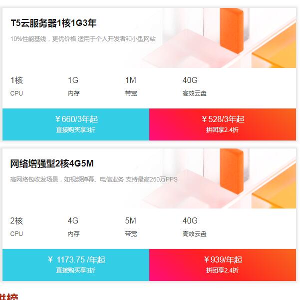 1 core CPU 1G memory 1M bandwidth 40G disk 2 core CPU 8G memory 4M bandwidth 60G disk 2 core CPU 4G memory 1M bandwidth 40