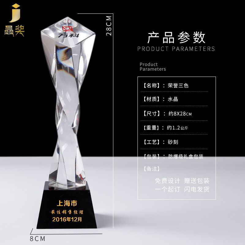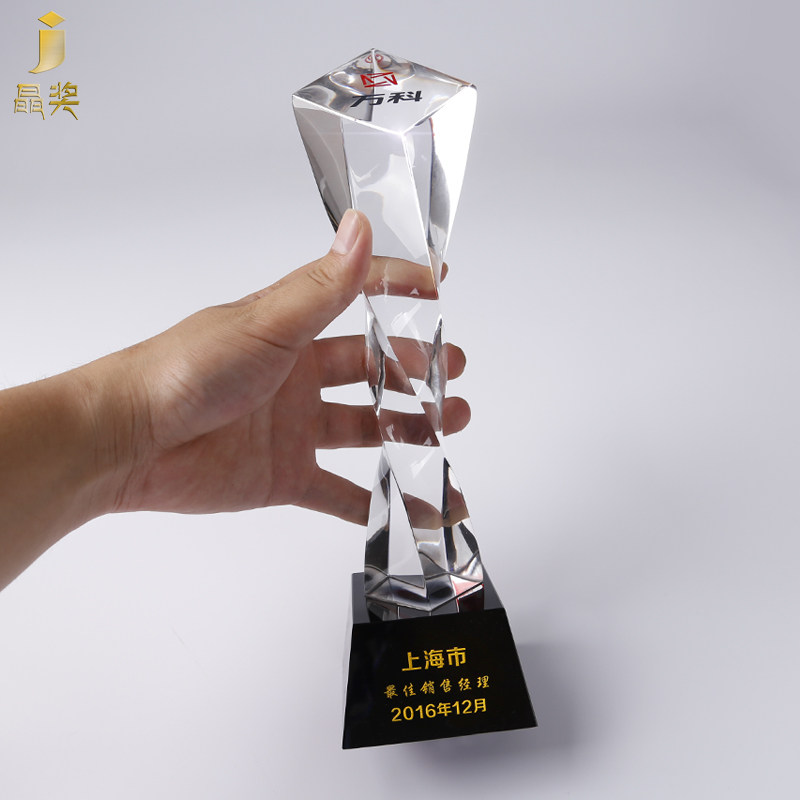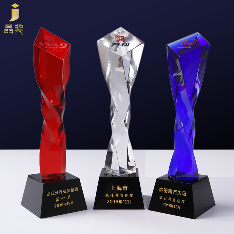 Blue Crystal Trophy Custom Contest Make Twist Column Trophy Company Awards Honor Medal Custom Souvenir