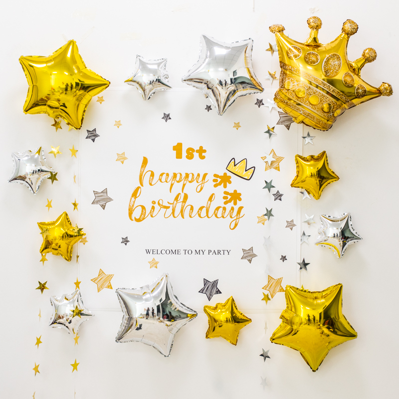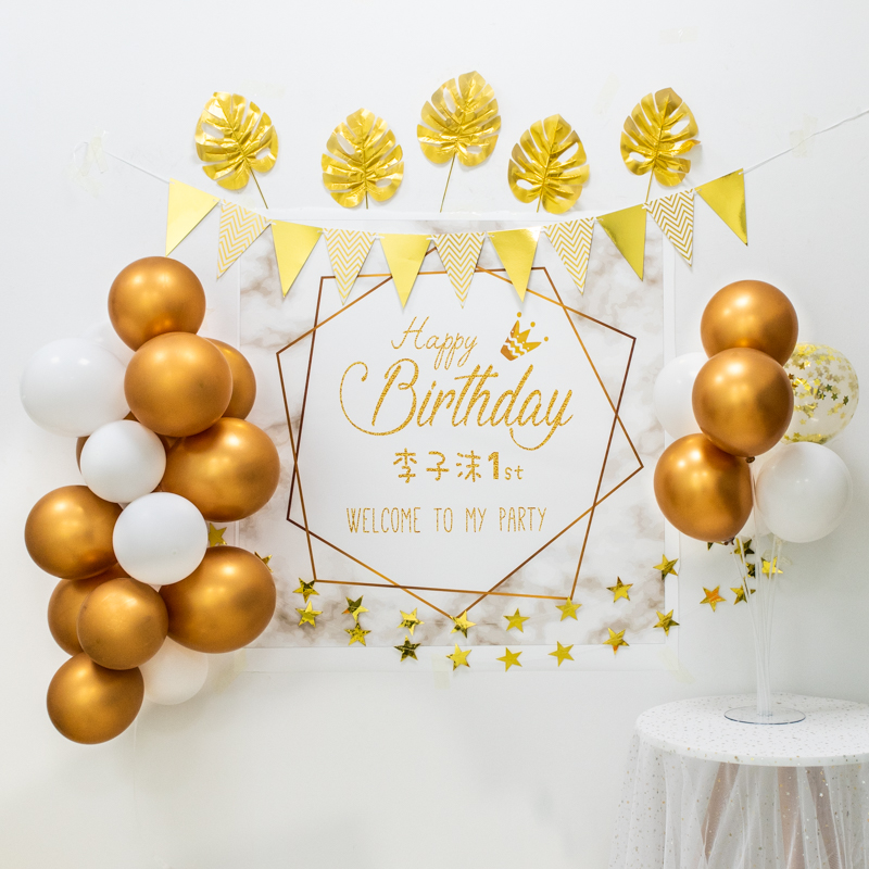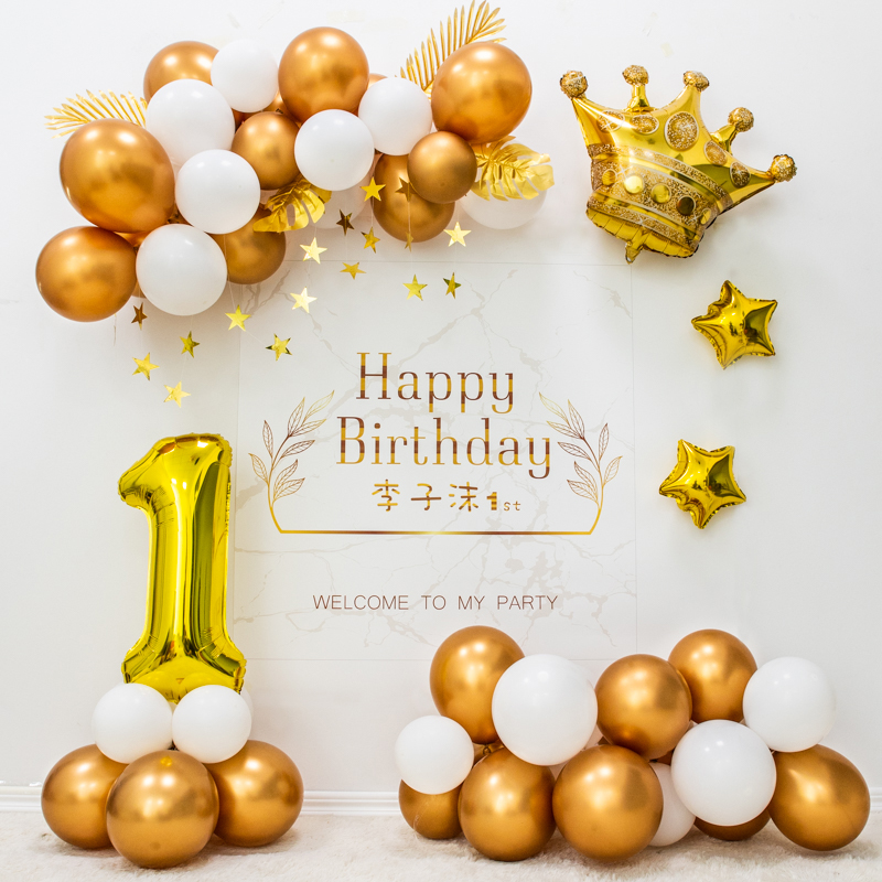 Platinum themed baby 1 birthday decoration scene layout poster background wall balloon baby boy and girl 2