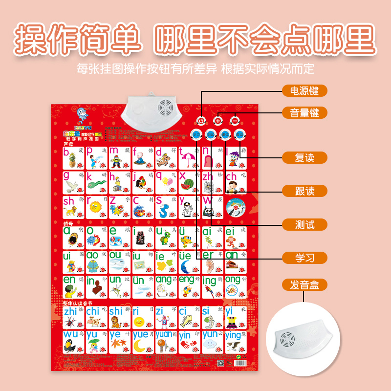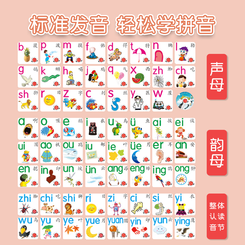 Pinyin alphabet Wall sticker initials sound flipchart Chinese learning training artifact Vowel phonics full set of first grade