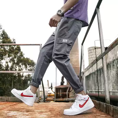 Short 155 small size men's small multi-pocket overalls pants bunched feet 27 yards sports pants s size thin casual pants
