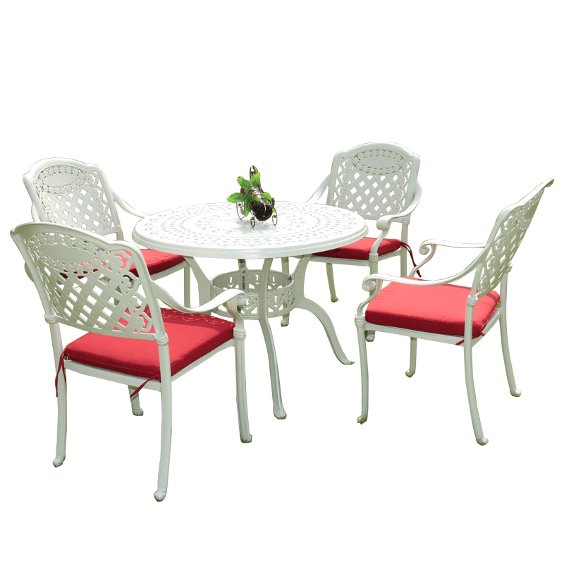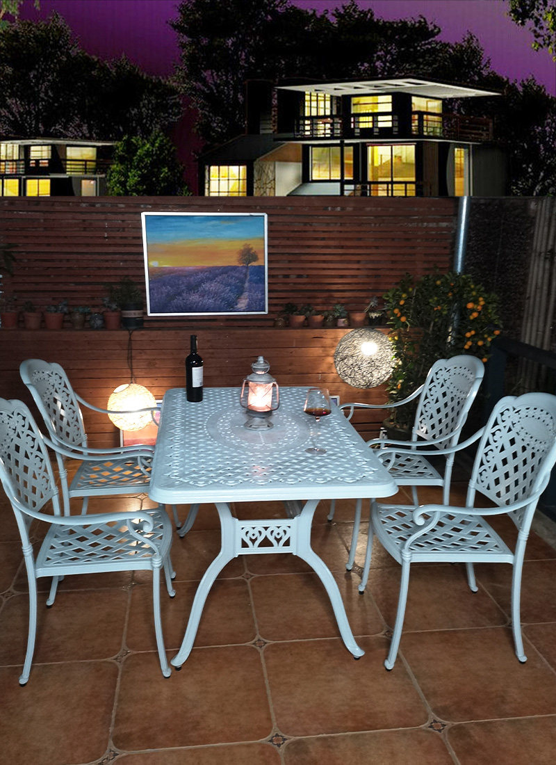 White Outdoor Dining Room Terrace Casual Courtyard Outside Swing Table Sample House Display Center Negotiate Table And Chairs Balcony Villa Iron Art Table