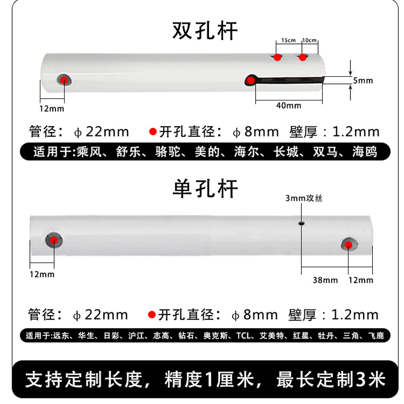 40 cm Single hole boom outer diameter 22 mm 50 cm Single hole boom outer diameter 22 mm 60 cm Single hole boom Outer diameter 22 mm 70 cm Single hole boom Outer diameter 22 mm 80 cm