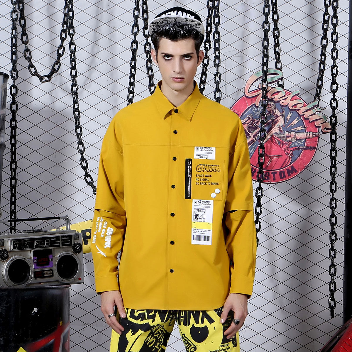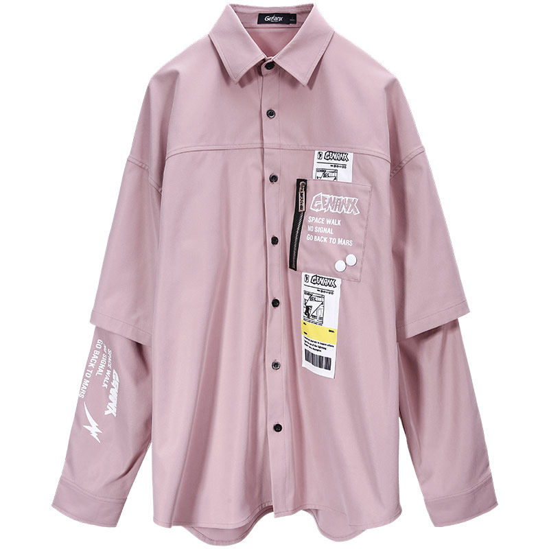GENANX Lightning Tide Long Sleeve Shirt Men Street National Tide Autumn New Hip Hop Trend Print Shirt