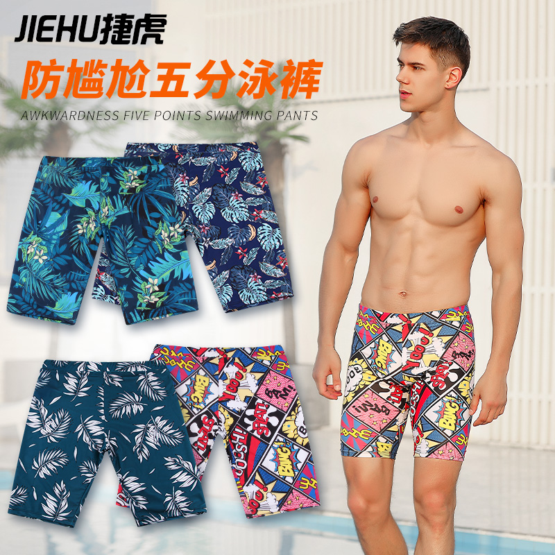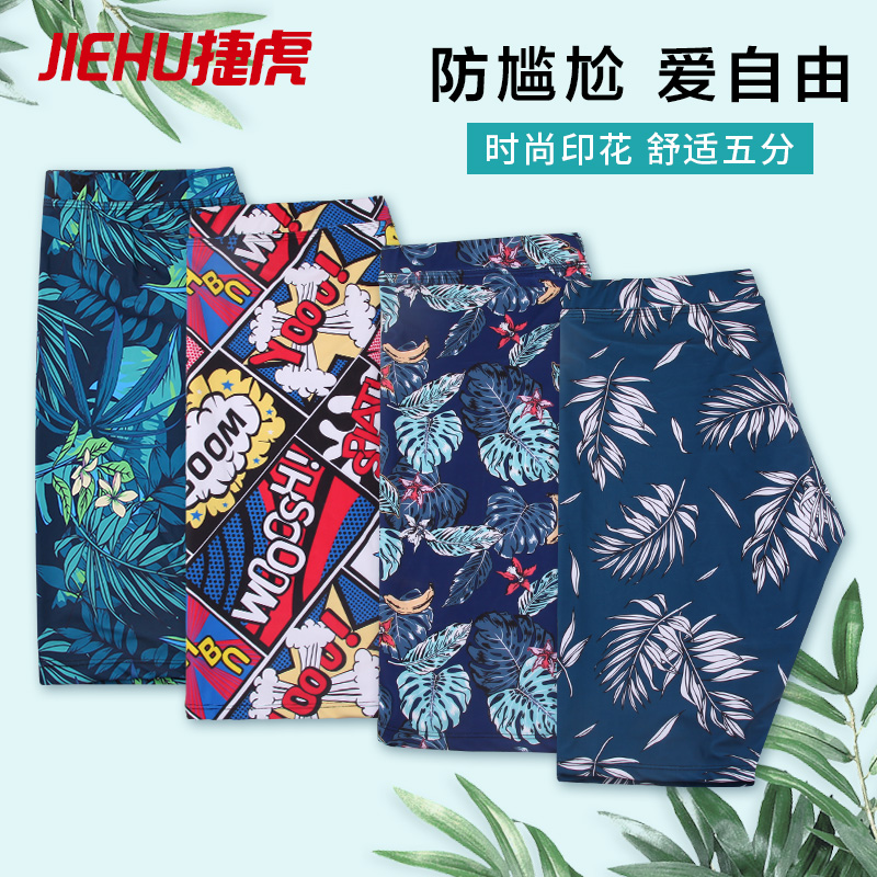 Swimming trunks men's anti-embarrassment professional five-point flat-angle loose version quick-drying hot spring boys equipped with large size swimming trunks