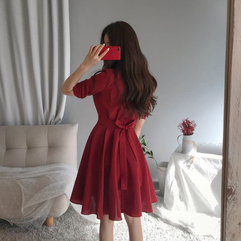 Fat MM Large Code Summer Fashion French Waist and Slim Dress Age Broken Sister A-Length
