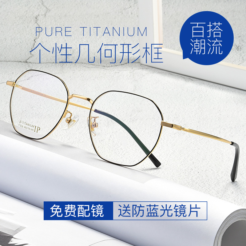 Retro pure titanium polygon eyeglass frame men's height with glasses anti-blue light myopia plus astigmatism female round face eyeglass frame