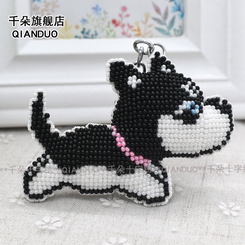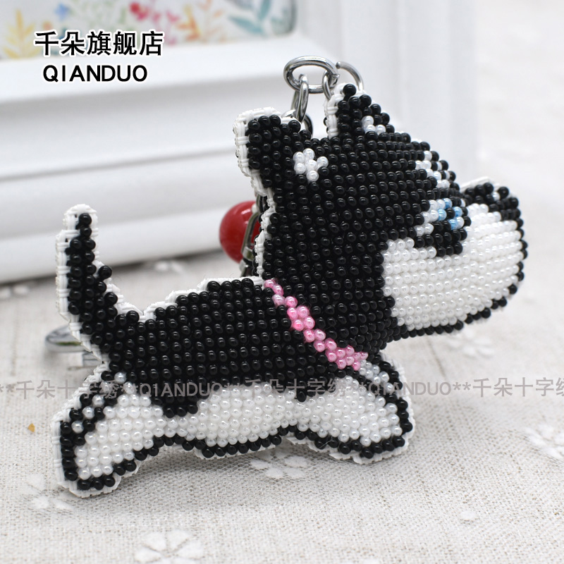 Picture paragraph three colorful Pearl Edition keychain random colors (yin hua ban embroidered simpler) black leather tassels (yin hua ban embroidered simpler) size