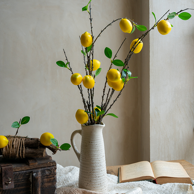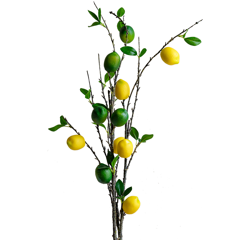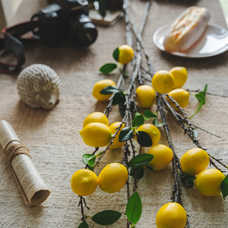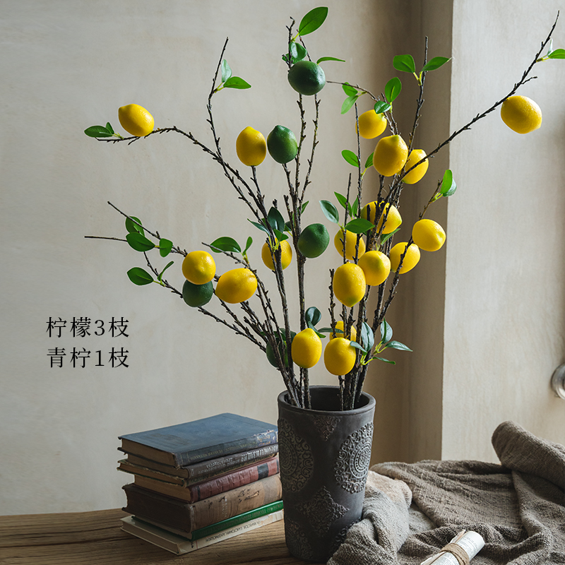 (Seven Jasmine) Emulated Lemon Fruit Fake Flower Inserts Flower Art Yellow Green Lemon long branches Leaf Room-like Dining Room Swing Piece-Taobao