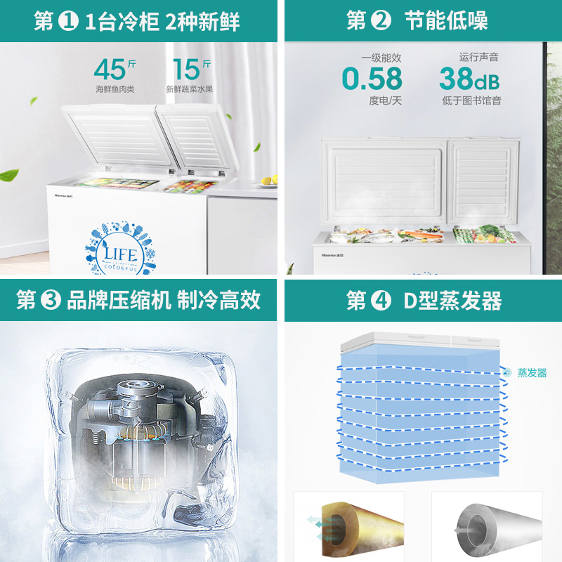 Haixin 280L Large Capacity Commercial Ice Cream Freezer First-class Energy Saving Low Noise Domestic Double Warm Small Frozen Refrigerated Cabinet
