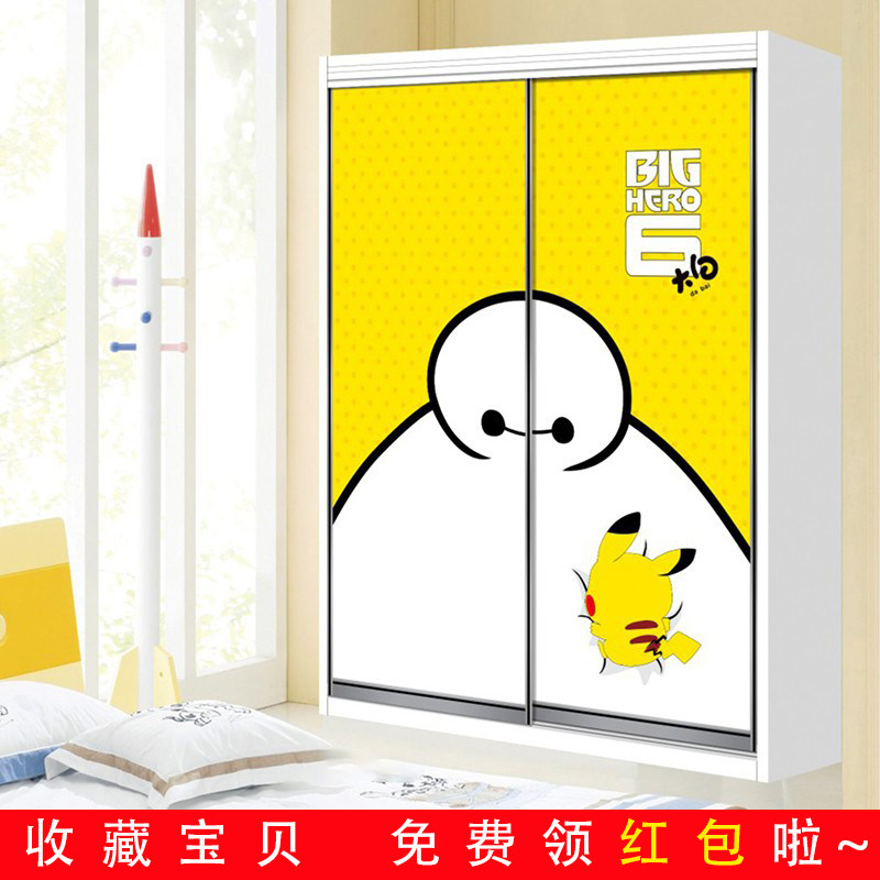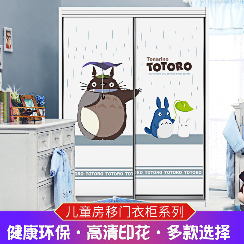 Cartoon wardrobe door sliding door paint boys and girls modern bedroom sliding door sliding