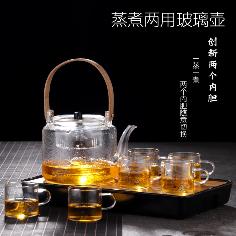 Lifting beam pot glass teapot tea set thickened heat-resistant high-temperature tea art pot Japanese-style household large-capacity steamed teapot