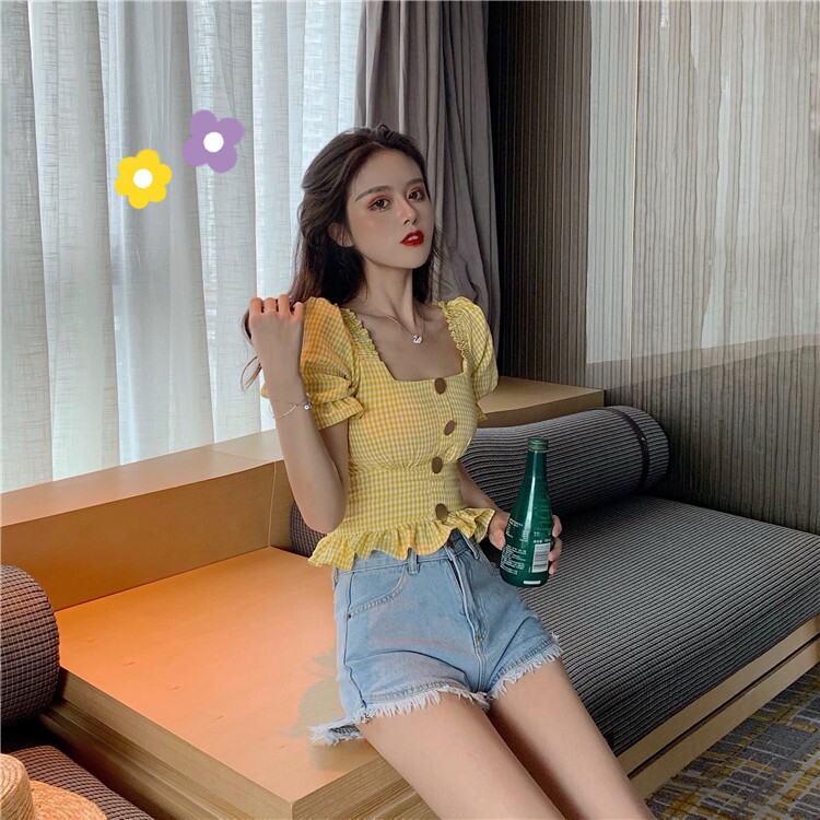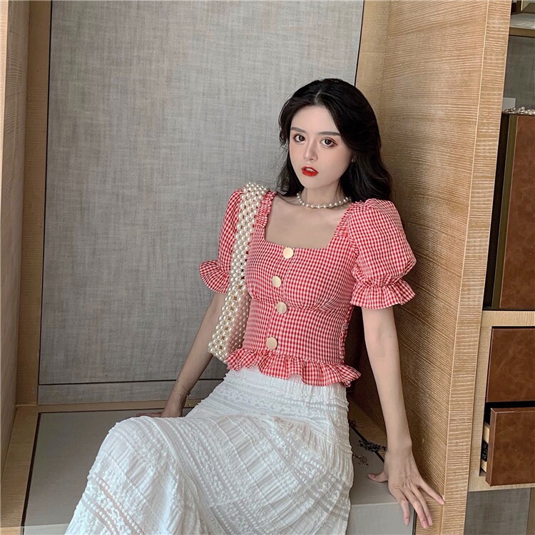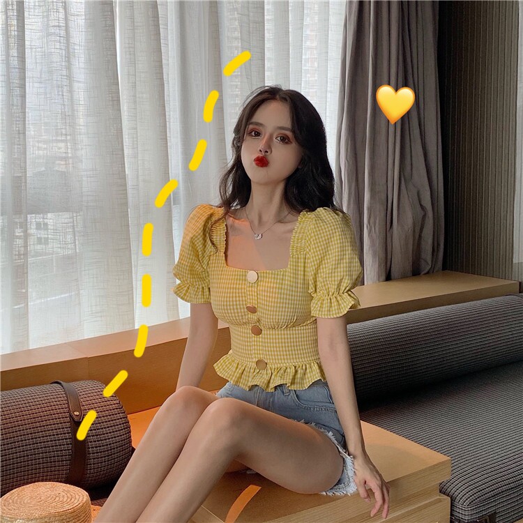Summer black and white plaid shirt women's retro Hong Kong flavor scheming short-sleeved design sense niche super fairy top western style all-match