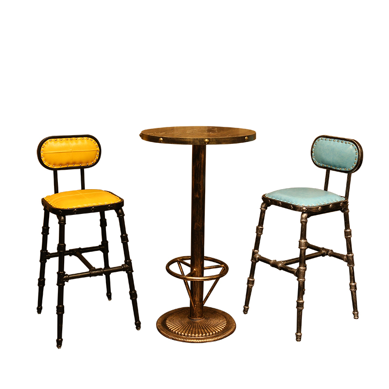 Round High Table Bright Yellow Water Pipe Bar Chair Blue Water Pipe Bar Chair