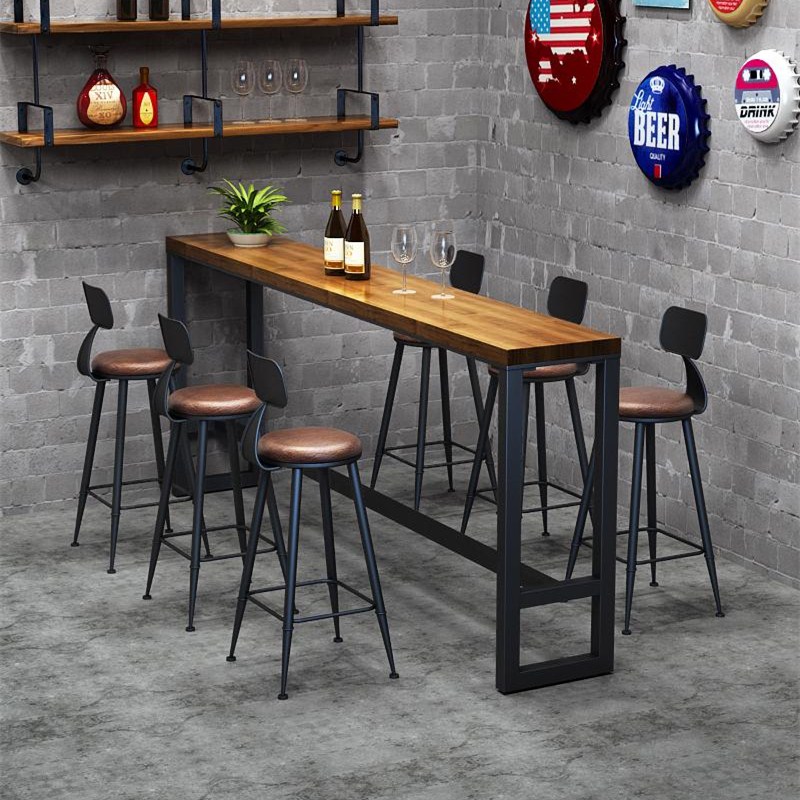Retro Iron Art Solid Wood Bar Table Coffee Table Bar Table Round High Table Dining Room High Feet Table Milk Tea Shop Table And Chairs